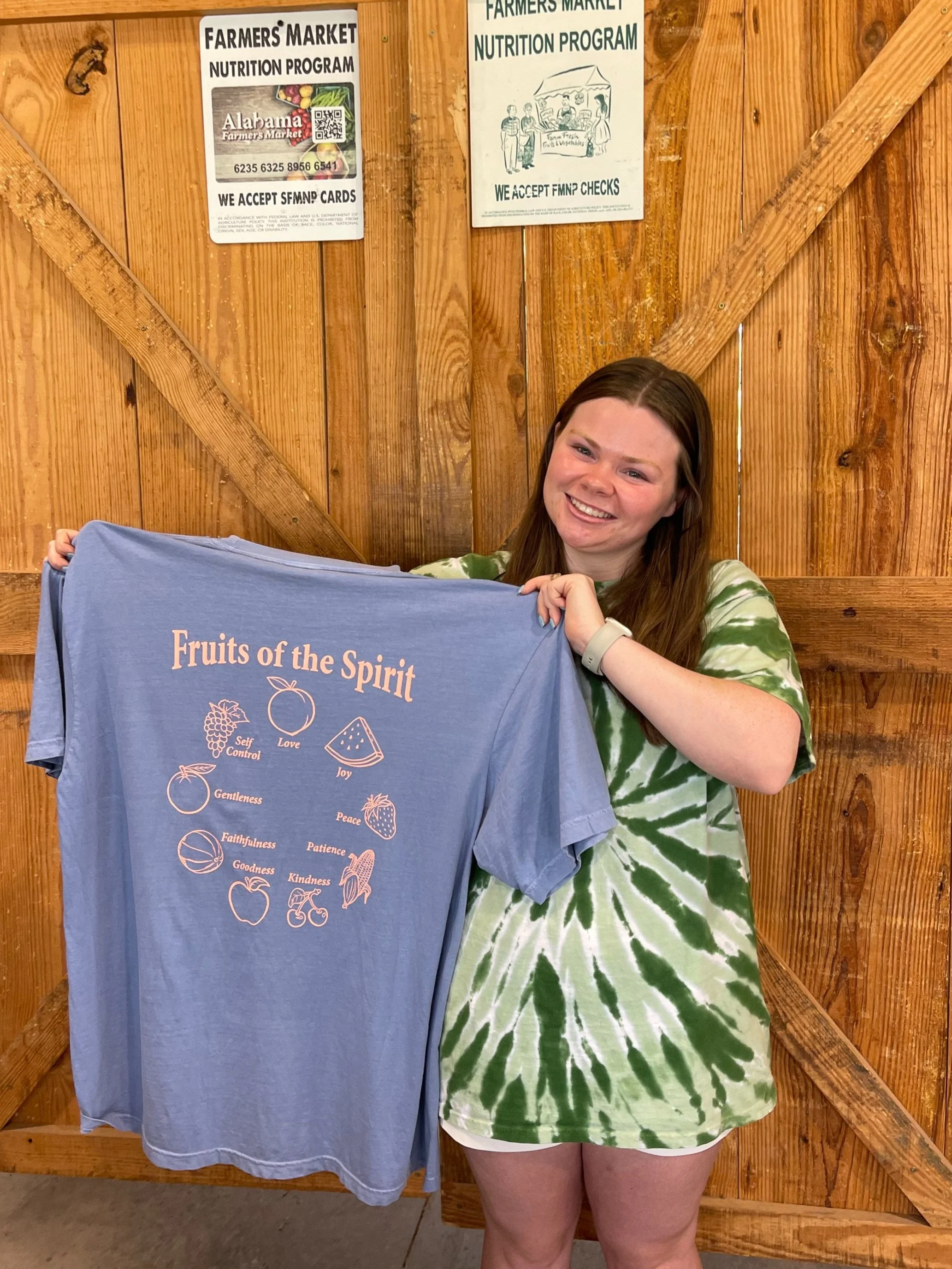 We sell both our basic logo shirt and “Fruits of the Spirit” shirt in a variety of colors and sizes. Show off your Reeves Farm spirit in a rainbow tie-dye shirt, a solid color, or our popular watermelon shirts! Your kids can sport the look too with baby onesies and toddler t-shirt sizes.